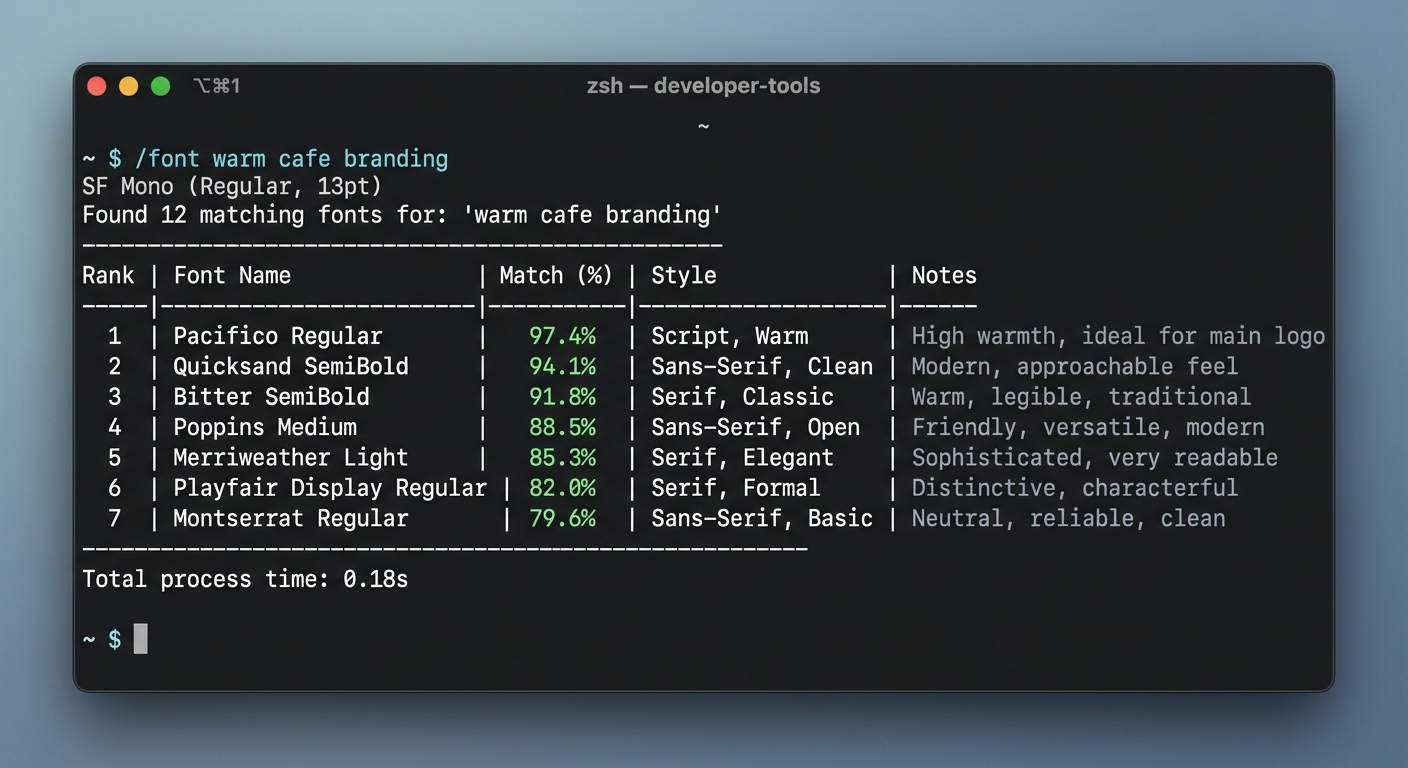 What if you could get expert font recommendations — with ready-to-paste CSS code — without ever leaving your terminal?