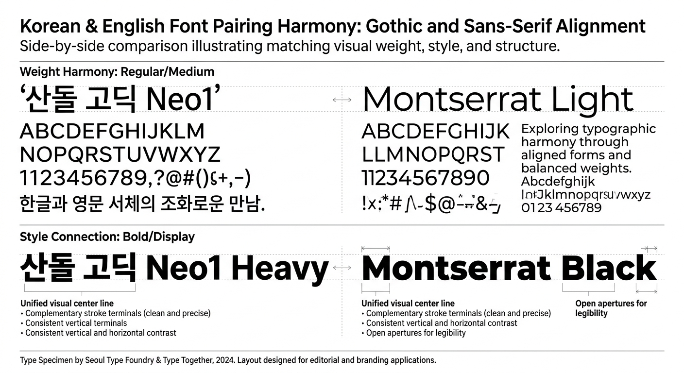 This guide covers the core principles of font pairing, specific strategies for Korean-English combinations, and practical patterns you can apply immediately.